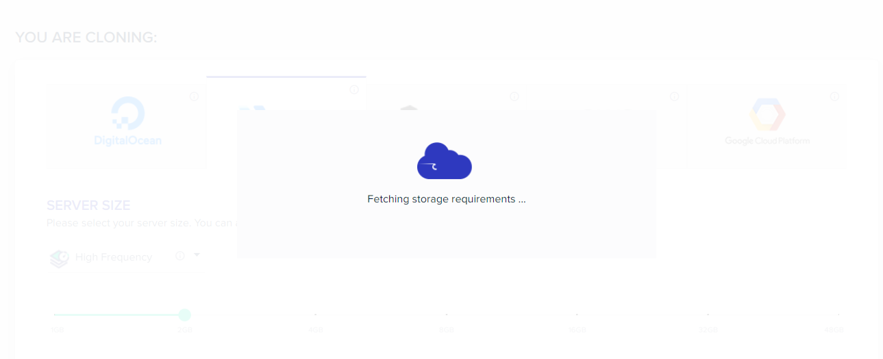 - 서버 복제 시 서버 제공업체(예: Vultr, DigitalOcean, AWS), 서버 크기, 서버 지역을 새롭게 선택하도록 합니다.