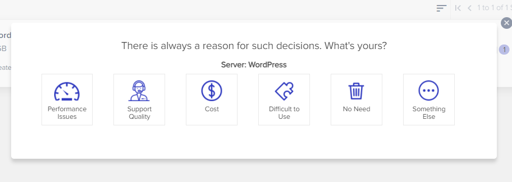 삭제 버튼을 누르면 삭제 이유를 묻는 팝업이 표시됩니다.