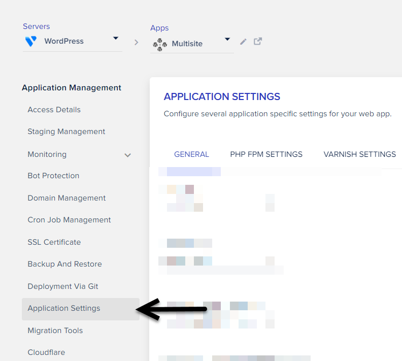 Application Management 페이지가 표시되면 Application Settings(애플리케이션 설정)를 클릭합니다.