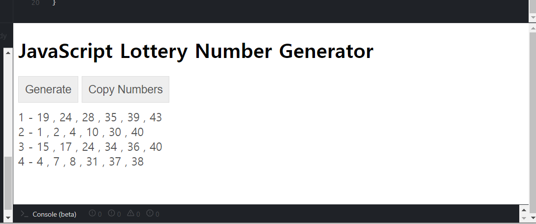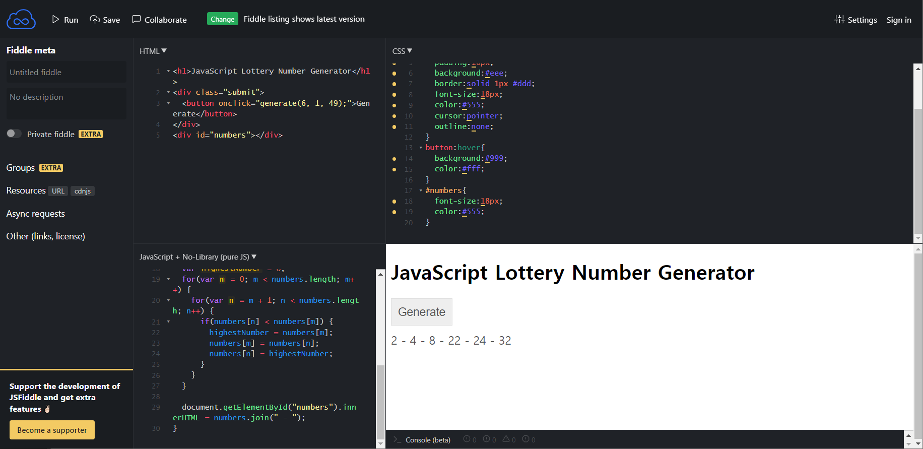 로또번호 생성기 소스는 다음 Codepen 사이트에서 확인할 수 있습니다.