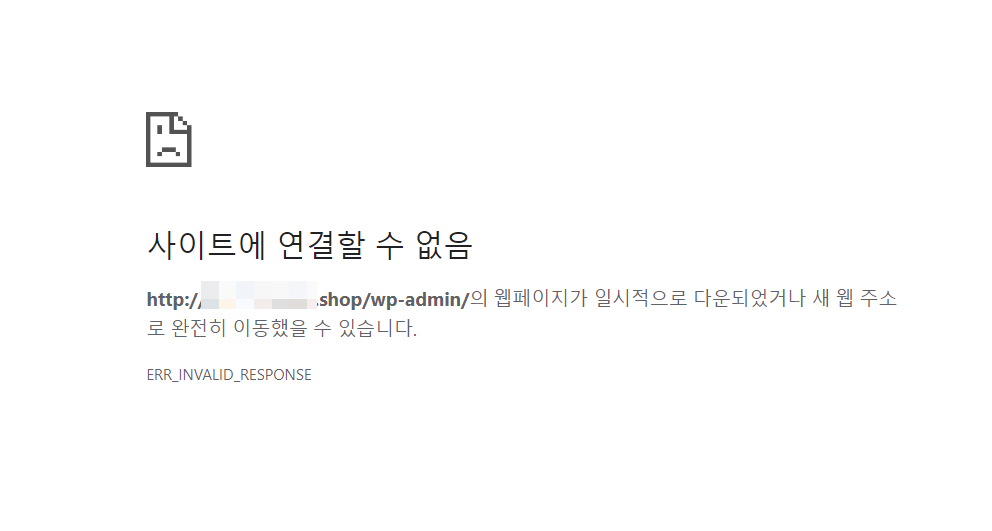 크롬 브라우저를 사용할 경우 위의 메시지가 표시되고, 엣지 브라우저를 사용할 경우에는 "흠… 이 페이지에 연결할 수 없습니다. http://example.com/wp-admin/의 ERR_INVALID_RESPONSE" 오류 메시지가 표시됩니다.