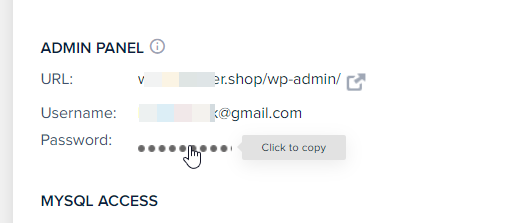 위의 그림에서 Admin Panel 섹션의 정보를 이용하여 워드프레스 관리자 페이지에 로그인할 수 있습니다.
