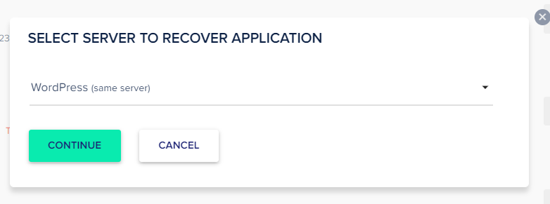[경고*복원되는 서버와 애플리케이션은 새로운 서버와 애플리케이션으로 취급됩니다. 신규 서버는 다른 IP 주소를 가지고, 애플리케이션도 새로운 기본 Cloudways 애플리케이션 URL(예: http://wordpress-123456-1234567[.]cloudwaysapps.com)을 가지므로 도메인 및 관련 DNS 레코드를 새롭게 설정/업데이트해야 합니다.*]